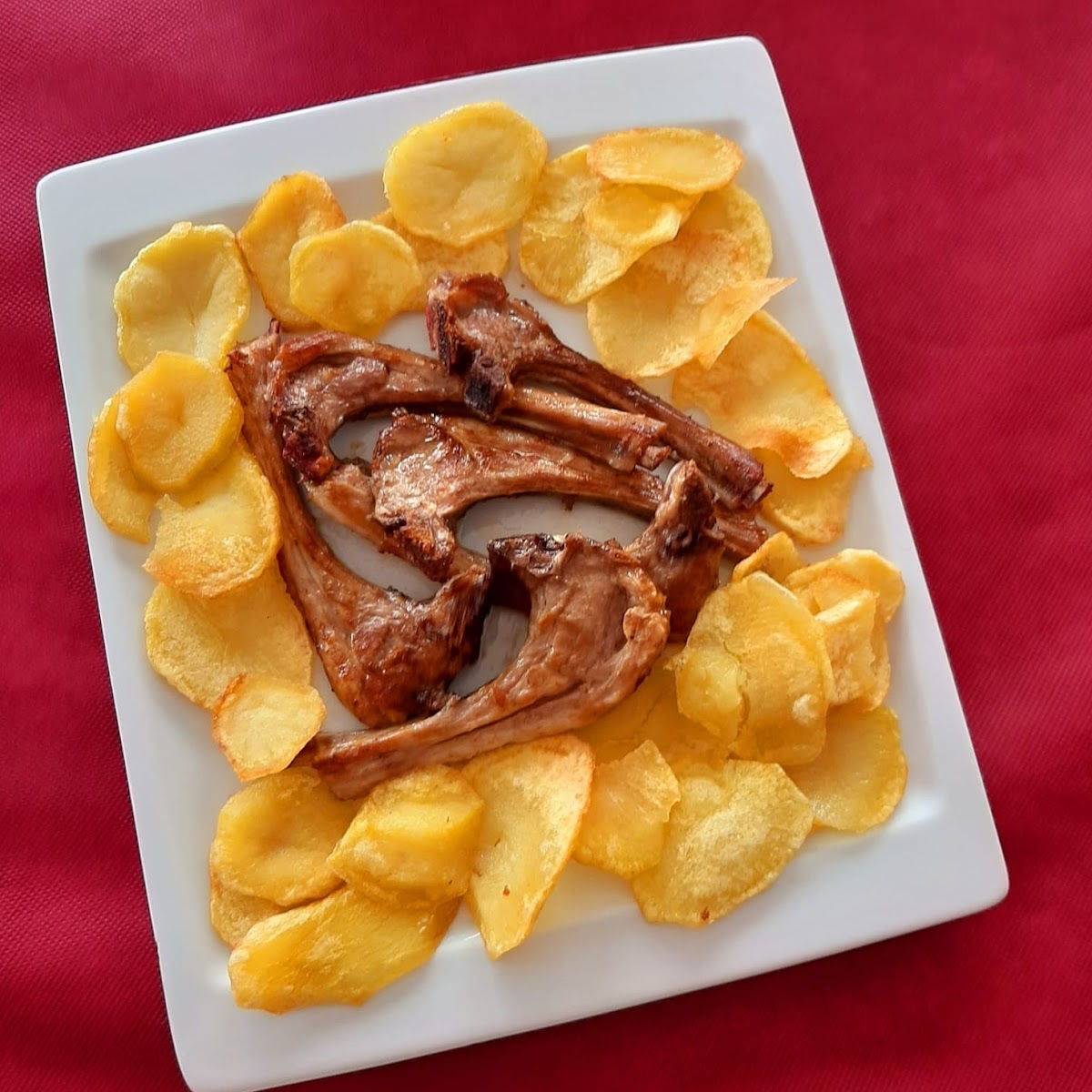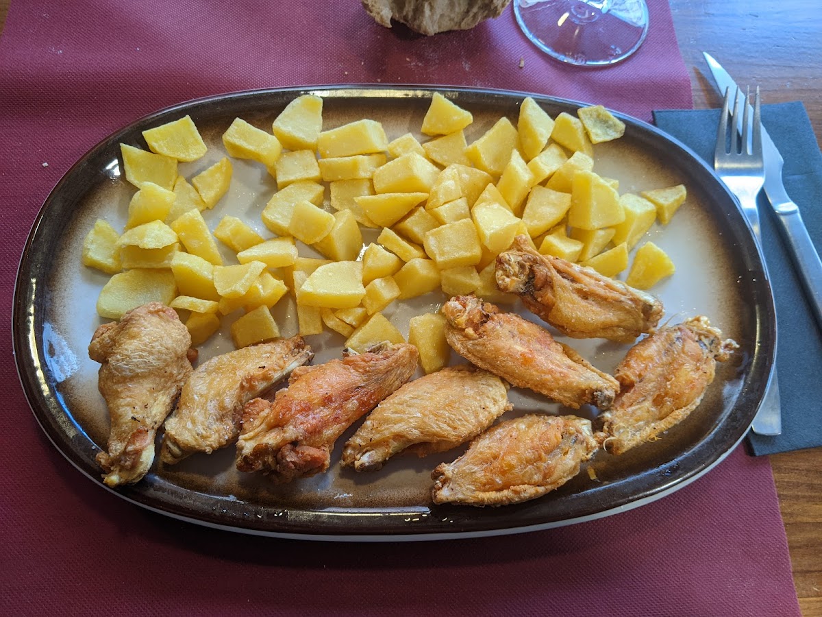 Estamos de vacaciones, había muchos restaurantes alrededor, pero al final elegimos este y quedamos muy satisfechos y contentos por precio-calidad-cantidad. Los platos abundantes. Con una cerveza te ponen un aperitivo, pero nosotros pedimos una botella grande de agua y una Cocacola. En total 30€ justos. No recuerdo si era un plato 11 y el otro 10€ o por ahí, que recuerde, no hay precios más bajos. Un pan por persona, en alguna foto de otra reseña se ve. Blandito y gordito, rico. Las patatas sacian bastante, a mí me gustan mucho y me parece que completamenta los platos bastante bien, pero tuvimos que dejar algunas porque ya estábamos llenos. Patatas con huevos: originalmente 2 huevos, pero nos dijo que nos añadía otro, porque éramos 3 (está sepultado el tercero) y jamón (rico). Y croquetas de jamón y patatas. Da gusto porque se nota que es casero.